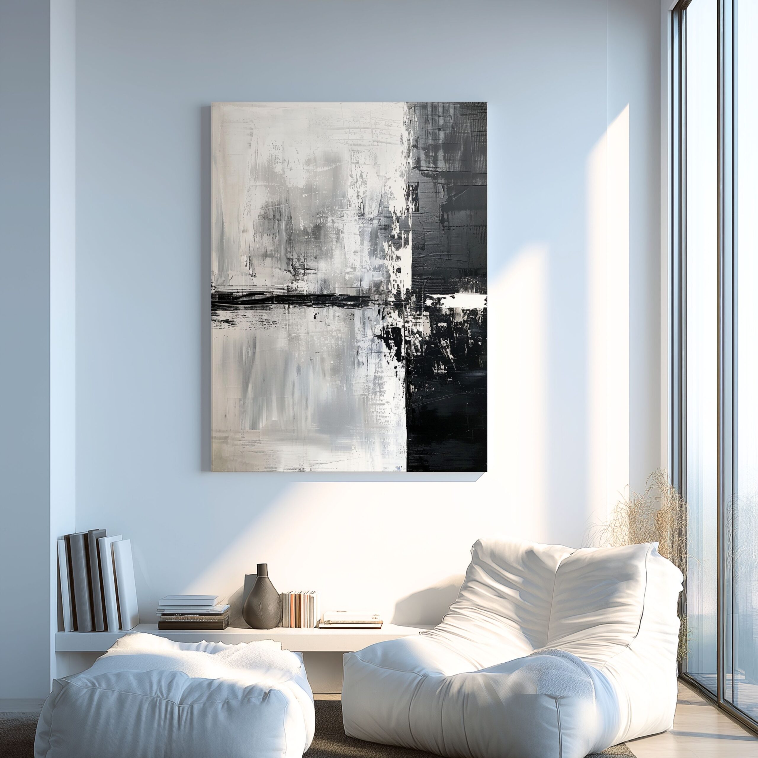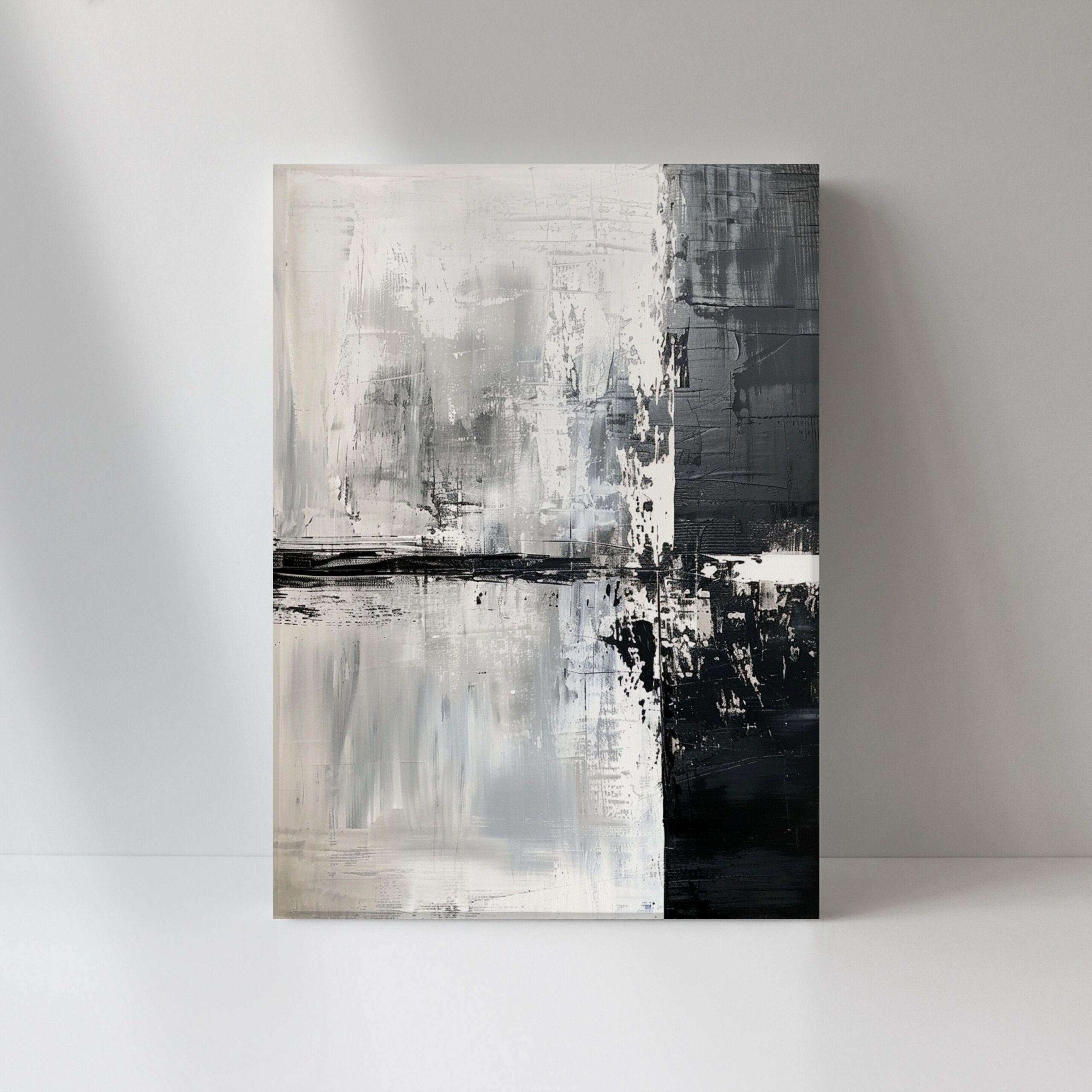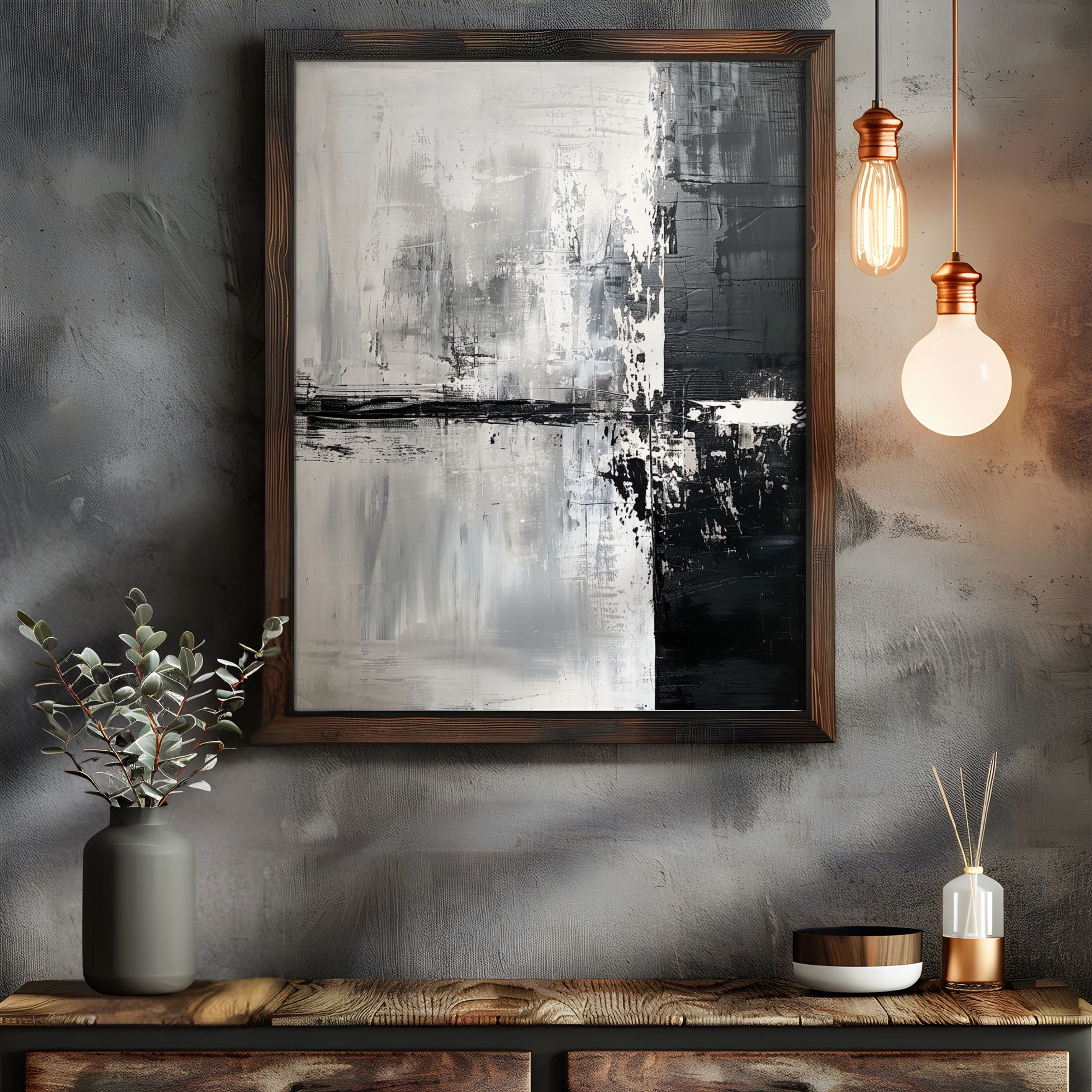 This monochrome abstract wall art printable features rich layered textures, soft gradients, and clean brushwork that create depth without overwhelming your décor. Its neutral black, white, and gray palette makes it a perfect fit for living rooms, bedrooms, home offices, hallways, and modern gallery wall arrangements.