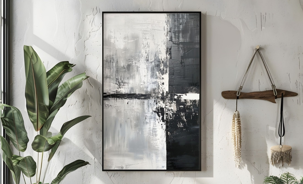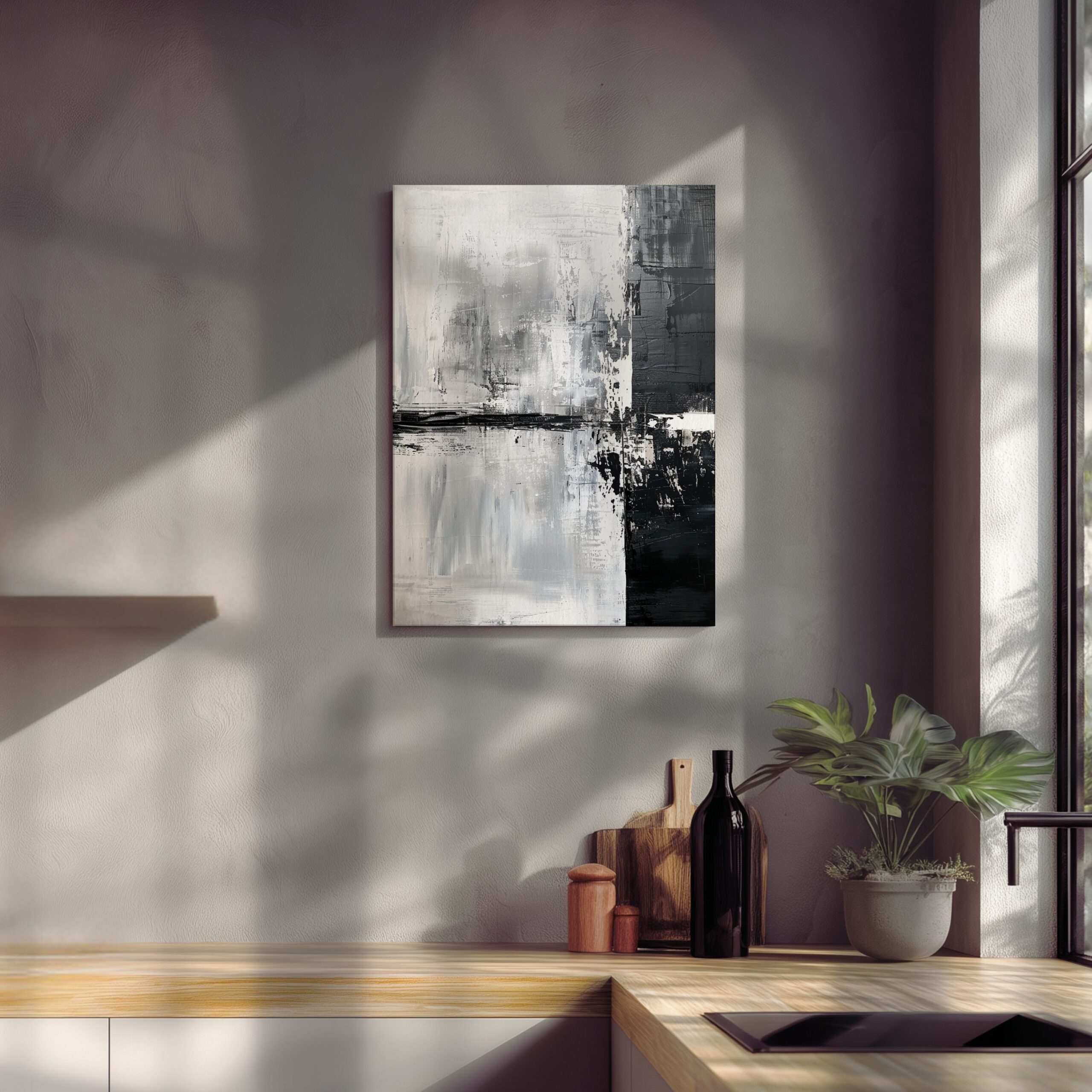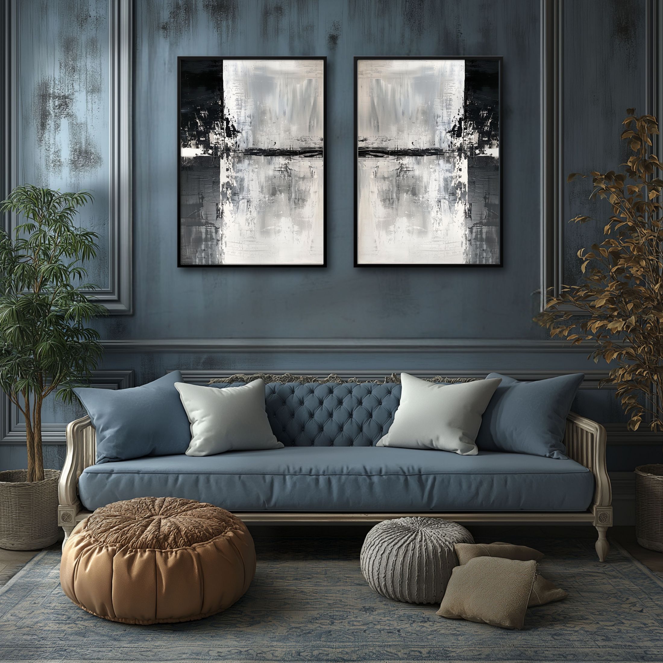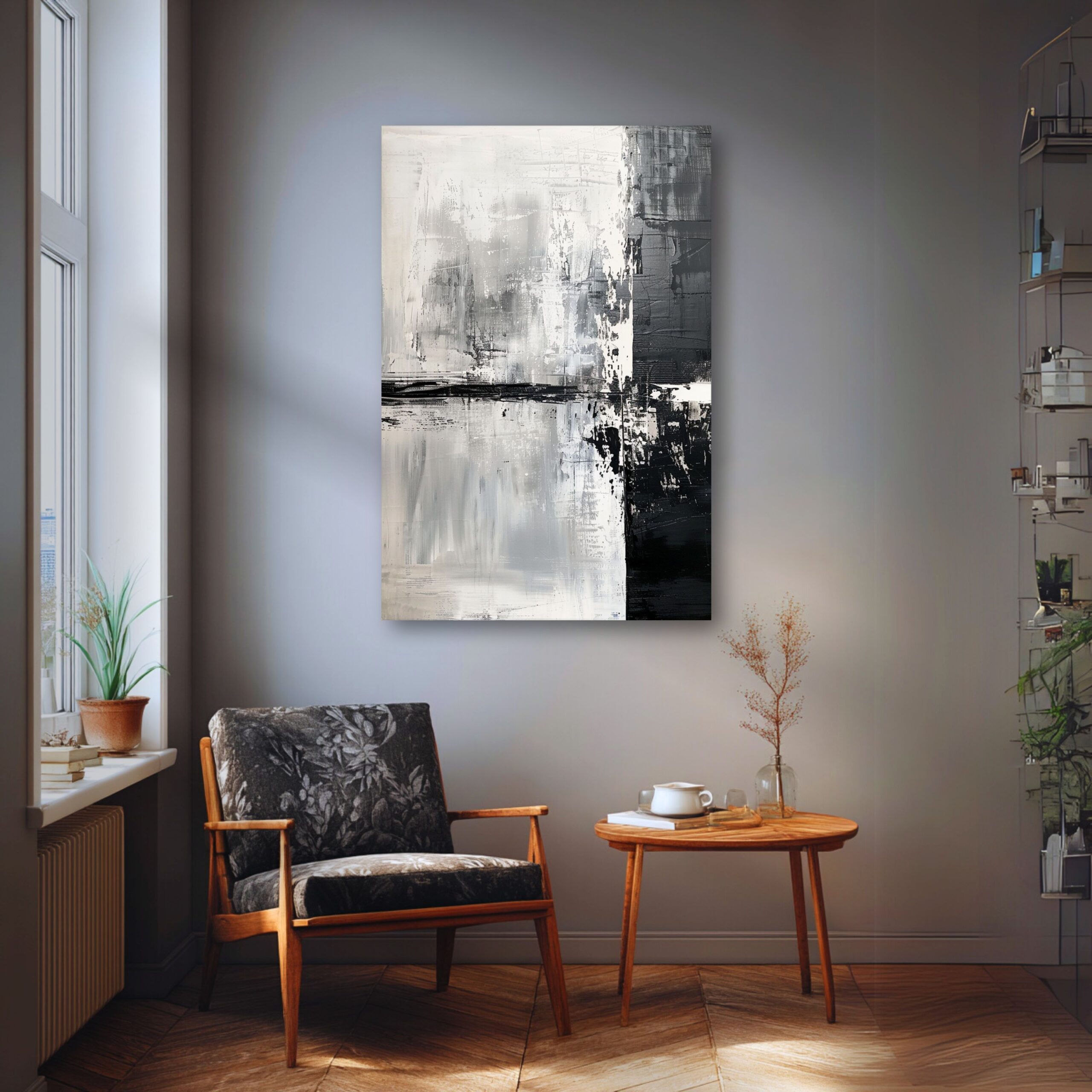 This monochrome abstract wall art printable features rich layered textures, soft gradients, and clean brushwork that create depth without overwhelming your décor. Its neutral black, white, and gray palette makes it a perfect fit for living rooms, bedrooms, home offices, hallways, and modern gallery wall arrangements.